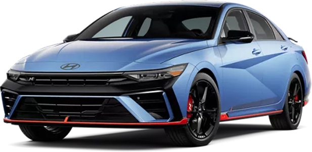 The 2025 Elantra N’s powertrain pairs a turbocharged 4-cylinder engine with a 6-speed manual transmission. As mentioned, it puts out 276 horsepower and 289 lb.-ft. of torque while. An automatic 8-speed wet dual-clutch transmission with paddle shifters is also available, which brings mpg down to 20 city/27 highway. The Elantra N’s efficient front-wheel drivetrain (FWD) allows it to return fuel economy of 21 mpg city/29 mpg highway.